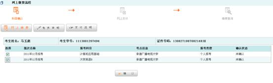 1、勾选上所报考科目,“确认”,提示成功后,正常的话,应该下一步即可缴费