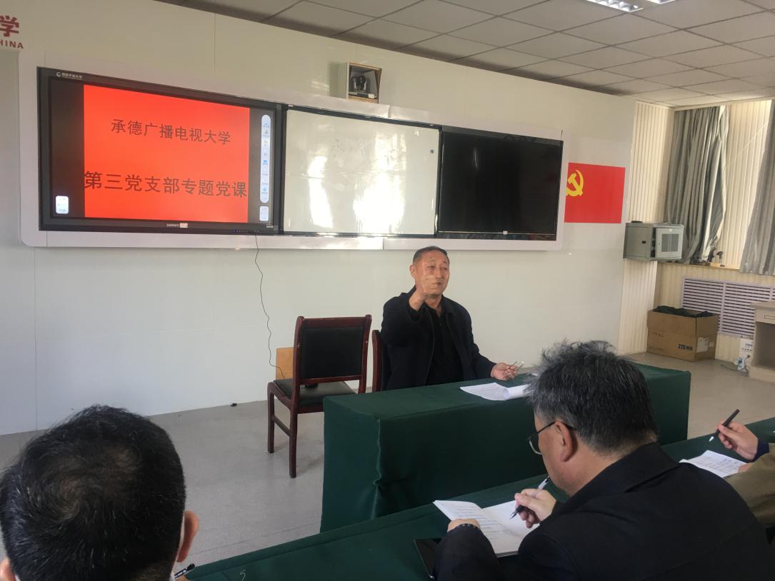 根据校党委统一部署,进一步推进落实党史学习教育,承德电大第三党支部4月6日下午开展了“老党员讲党课、学党史有收获” 党课学习活动。
