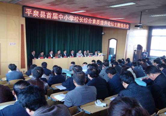平泉县教育局于2011年10月开始,也开展了“校长论坛”活动。图为2011年10月平泉县首届校长论坛,论坛主题是“校长综合素质提升”。论坛上,各具特色的教育思想在碰撞中放射出智慧的火花,独具个性的管理理念在交流中获得再次升华,教育干部们在切磋交流磨砺提升中成长了自己,也构建了平泉教育的一道亮丽风景线。此外,在论坛活动中,县教育局对表现突出的21位校(园)长进行了表彰,张彦春等8位校(园)长以自己的探索实践从校长素质提升、学校内涵发展、课堂教学改革、学生健康发展、考核评价机制等方面做了典型发言。