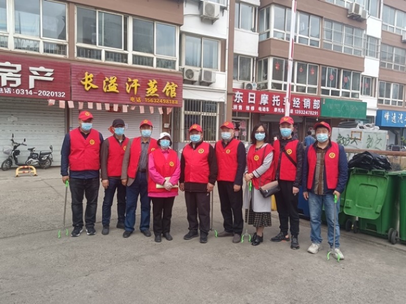 4月24日上午,一支部所在部门的党员和群众在学校党委书记姚钢乾、党委副书记张阁玉、党委委员吴树祥的带领下来到水泉沟社区开展志愿服务活动,志愿者身穿红马甲,头戴小红帽,对小区环境进行大扫除,清理卫生死角、清除垃圾杂物、清除小广告、劝阻清理乱停乱放等活动。同时向社区居民发放了《关于广泛开展爱国卫生运动倡议书》和《承德市文明旅游倡议书》。