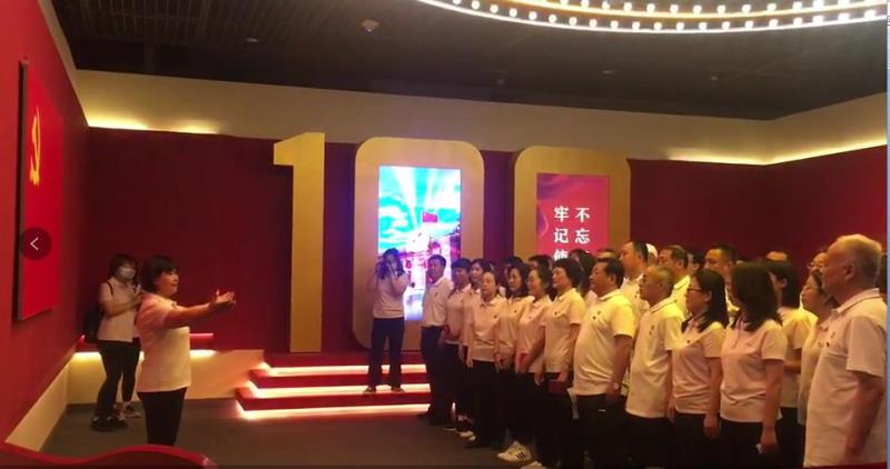 参观结束后,承德电大党委在展馆举行了隆重的老党员重温入党誓词和合唱歌曲《团结就是力量》活动,姚钢乾作总结讲话,活动后对新、老党员代表进行了采访,同时在“冀云”平台同步直播活动过程。