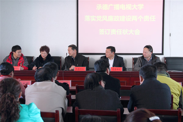 会上,学校党委书记姚钢乾、学校党委委员、副校长张阁玉、张桂春、学校党委委员、纪委书记杨永明分别代表学校党委、纪委与各支部书记、分管处室主要负责人签订了《2014——2015年党风廉政建设责任书》。这是乐竞在线注册党委为了进一步贯彻落实党风廉政建设两个责任,明确“一岗双责”的责任体制,层层传导压力,确保党风廉政建设有人抓、有人管、追责有目标、责任有人担而采取的一项重要举措,对于乐竞在线注册的党风廉政建设和反腐败工作的深入开展,必将产生积极的的推动作用。