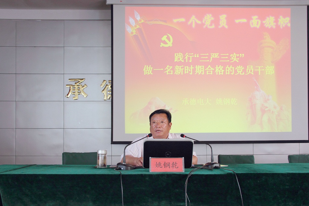 姚钢乾以《践行“三严三实”,做一名新时期合格的党员干部》为题,从“三严三实”专题教育活动的概述、“三严三实”的产生发展过程、开展“三严三实”专题教育的重要意义、“三严三实”的基本内涵和践行“三严三实”要做到“四加强,四提高”等五个方面,对本次“三严三实”专题教育进行了深入的讲解,并提出了要求。他指出,“三严三实”专题教育,作为党的群众路线实践教育活动的延展,作为党员领导干部修身律己的重要载体,十分必要、非常及时。广大党员干部一定要吃透本质、打牢基础、抓住关键、找准落脚点。