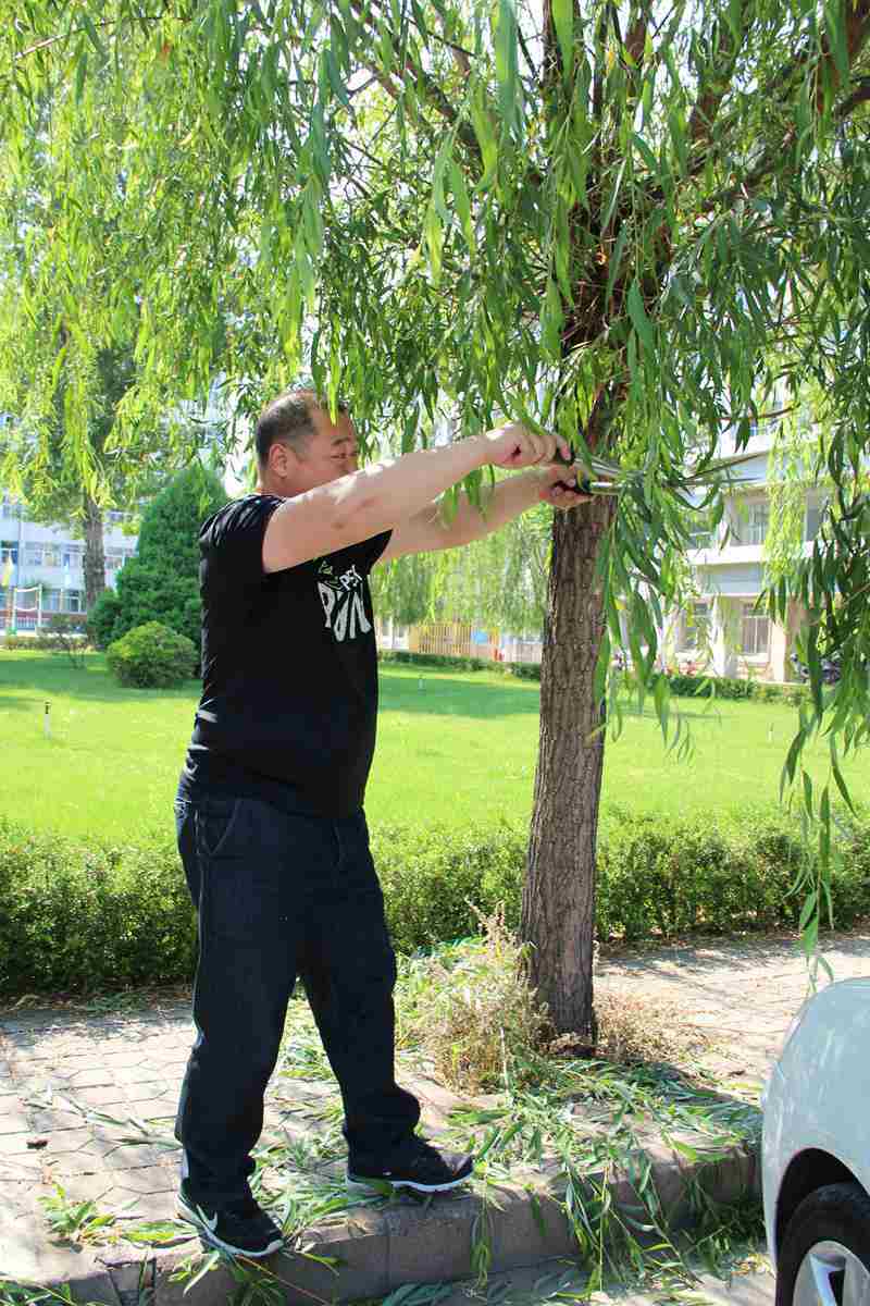 活动中,支部全体党员各负其责,拿起剪刀、铁锹等工具,重点对学校中的树木枝条、杂草进行修剪,经过一下午的修剪,校园绿化树木换了新装,学校更加美丽宜人,活动取得了良好的成效。各位党员虽然汗流浃背但纷纷表示:这是自己应该做的,作为一名党员,更应该处处起到模范带头作用。