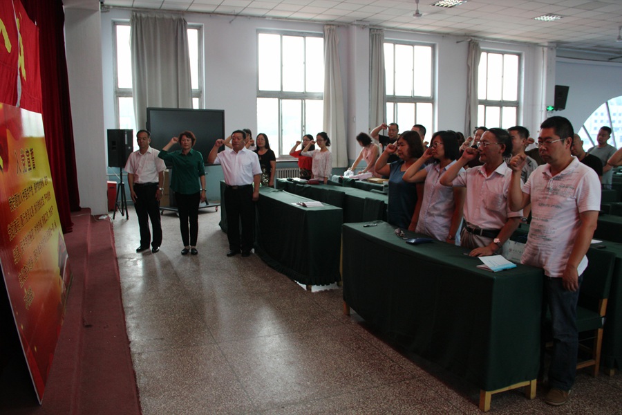 会上,举行了新党员入党、老党员重温入党誓词仪式。对学校2015年度优秀党支部、优秀党员和优秀党务工作者进行表彰,最后,姚书记围绕“重温入党誓词,做合格党员”这一主题,开展讲党课,使全体党员了解了什么是“两学一做”学习教育、“两学一做”学习教育活动的重点、全面把握“两学一做”的科学内涵和实践要求及有效开展“两学一做”的具体举措,并提出全体党员要结合实际,不仅要当合格党员,作为教育工作者更要时刻牢记党员身份,在实践中锻炼党性,树立正确的权力观,加强党性修养,全心全意为人民服务。