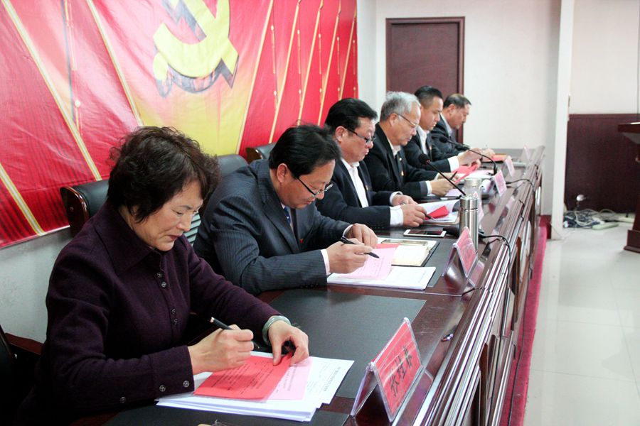 12月16日下午,承德广播电视大学召开全体党员大会对学校党委、纪委进行换届选举。学校党委书记姚钢乾、党委副书记张阁玉、副校长苏宏伟、副校长苏卫兵、副校长张桂春、纪委书记杨永明及全体党员参加会议。会议由张阁玉主持。