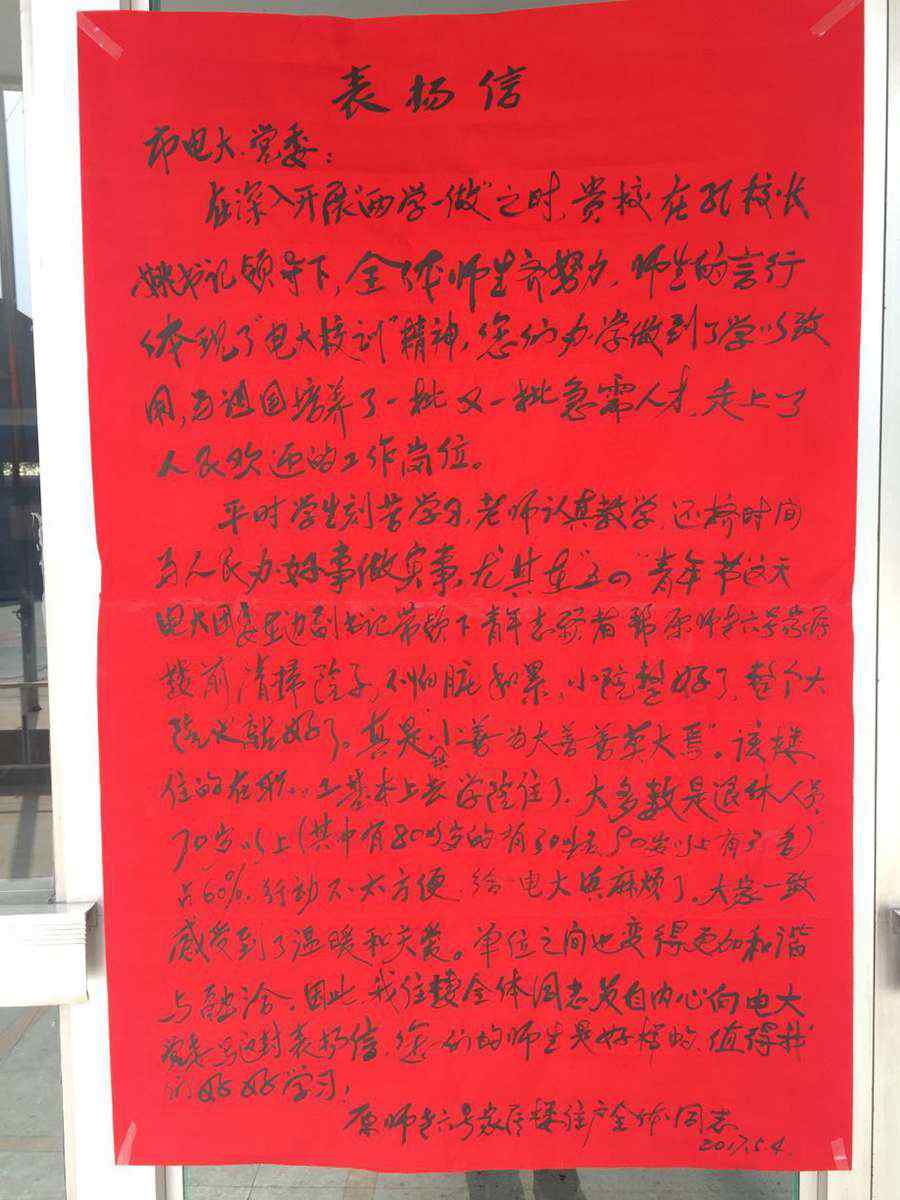 承德电大团委收到群众感谢信