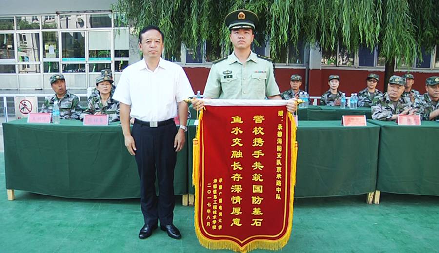 随后,孔庆龙代表学校向承德消防支队京城路中队赠送了锦旗;苏宏伟宣读了优秀集体和优秀个人名单;与会校领导与部队首长共同为获奖者颁发了荣誉证书;新生班主任和新生代表分别作了发言。