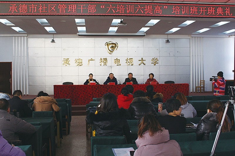 11月28至30日,承德市民政局、承德广播电视大学(承德社区教育学院)联合举办了“六培训六提高”社区管理干部培训班。承德广播电视大学党委书记姚钢乾、承德市民政局副局长魏立军、承德广播电视大学副校长张桂春出席了开班仪式。仪式由承德广播电视大学(承德社区教育学院)社区教育处处长刘丹主持。各县、自治县(市)、区民政局股长和各社区主任(书记)及管理人员共计340余人参加了培训班。