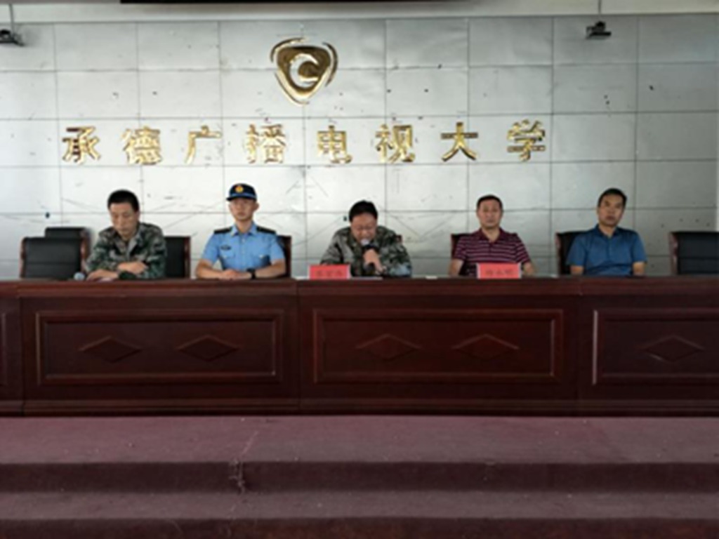 8月21日上午8点30分, 承德广播电视大学 承德信息技术学校在六楼大会议室隆重举行18级军训动员大会。副校长苏宏伟、纪委书记杨永明、办公室主任吴树祥、中专部书记陈强、参训教官及全体新生参加会议。会议由中专部书记陈强主持。