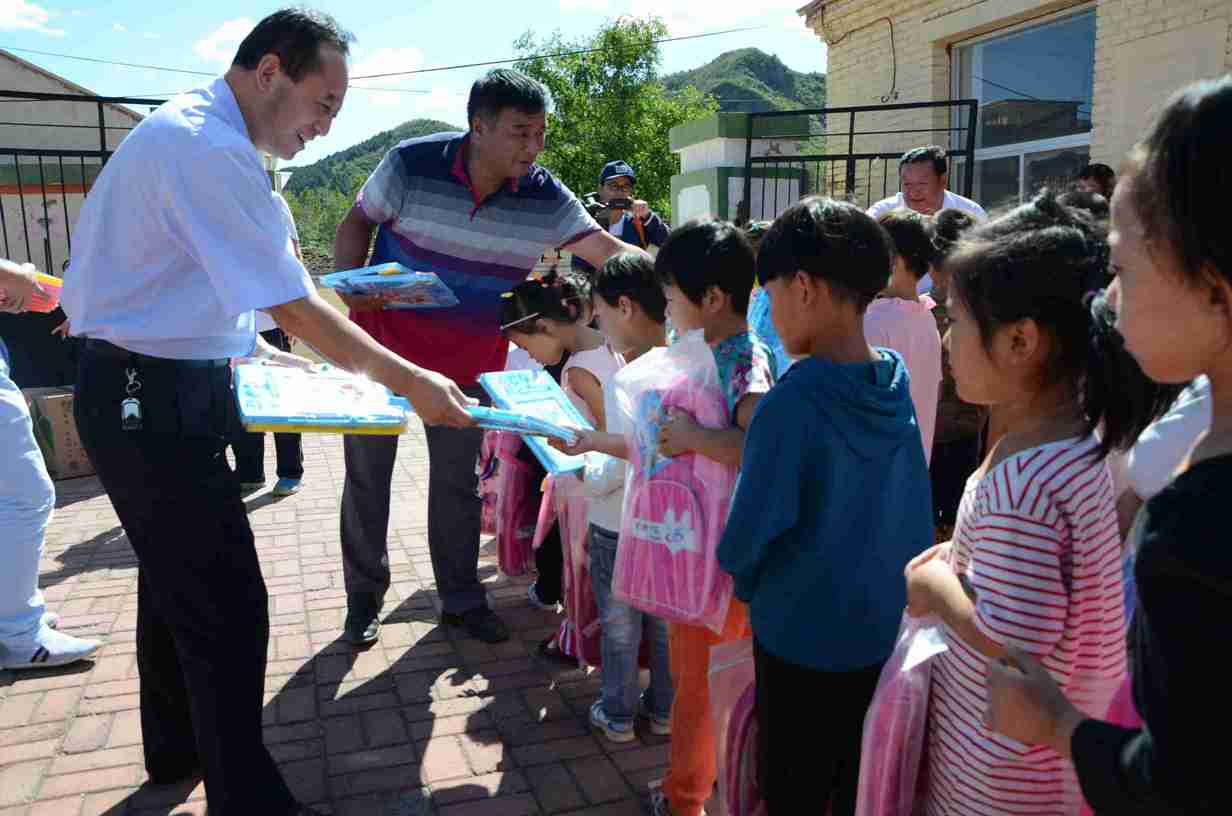 后沟村小学现有两名教师,32名学生,他们长期缺少娱乐设施。承德广播电视大学领导班子研究决定,为后沟村小学送去书包、文具盒、画册、写字板、地球仪、足球等用品。
