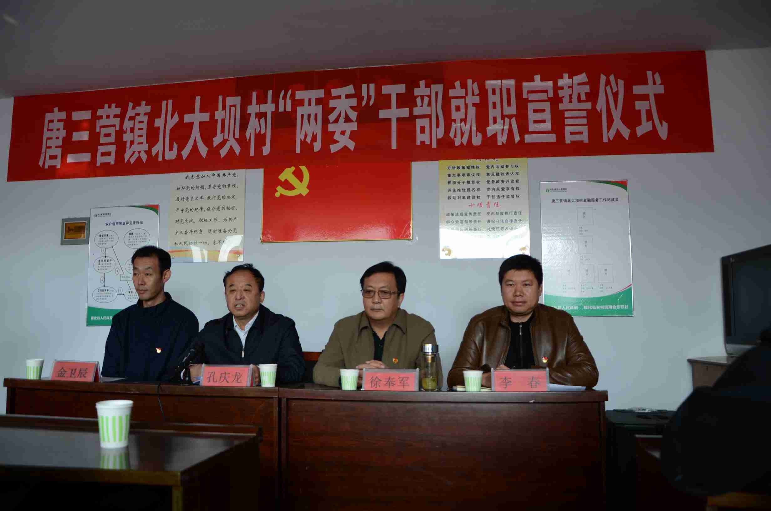 2018年10月22日,承德市人大常委会副主任、承德广播电视大学校长孔庆龙赴隆化县北大坝村参加新一届村“两委”干部就职承诺仪式。隆化县人大常委会副主任徐奉军、承德市规划局驻北大坝村第一书记李春、隆化县人大教科文卫委主任韩冬华参加仪式,仪式由隆化县唐三营镇党委书记金卫辰主持。