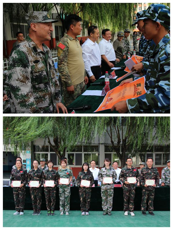 随后,孔庆龙代表学校向承德兵之初文化传播有限公司赠送了锦旗;杨永明宣读了优秀集体和优秀个人名单;与会校领导与参训教官共同为获奖者颁发了荣誉证书;新生班主任和新生代表分别作了发言。