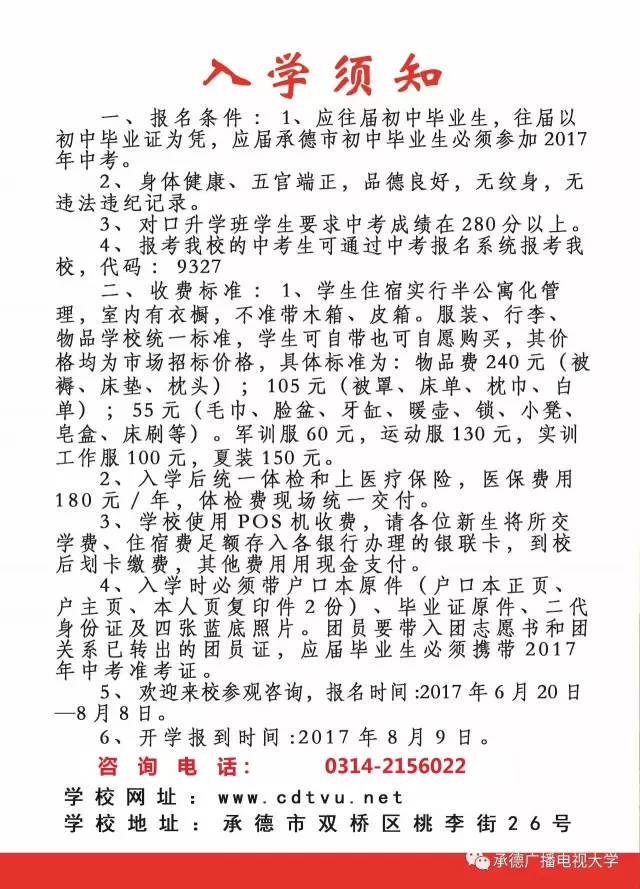 承德信息工程技术学校2017年秋季学生物品招标通知