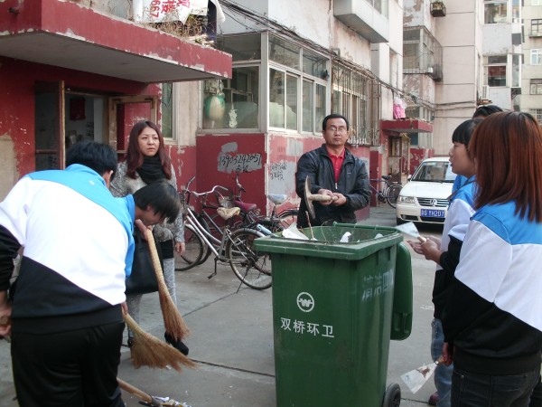 志愿者们利用从学校携带的笤帚、撮子、铲子等清洁工具,与部分小区居民一起,对桃李街社区所辖的外贸、广电、一中、帝景园等小区进行了清扫。清理了楼宇间花坛、广场和过道,打扫了楼道,铲除了小区内张贴的各种小广告,并清理了卫生死角。经过一下午的集中清扫,社区环境卫生得到彻底改善。志愿者们通过参与卫生清扫活动,增强了文明创建意识,以实际行动为建设美丽承德贡献了自己的一份力量。(中专部许海燕)