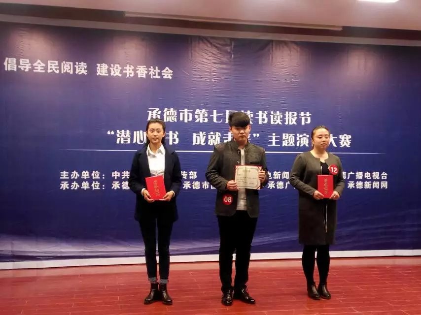 2015年10月20日下午,由中共承德市委宣传部、承德市文广新局、承德市电视台主办、承德市图书馆、承德市图书馆学会、承德广播电视报社、承德新闻网承办的承德市第七届读书读报节“潜心读书、成就未来”主题演讲大赛在河北民族师范学院如期举行。经过紧张激烈的对决,乐竞在线注册2014秋季电子商务班栾孟杰及2014春季计算机一班王海淑两位同学分别荣获了“三等奖”及“优秀奖”的好成绩。